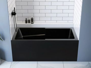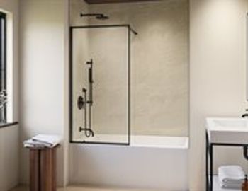Tub Panel Ultra Modern Design. 6mm Glass Clear, Smoked or Fluted. Color Choices Matte Black & Brushed Gold