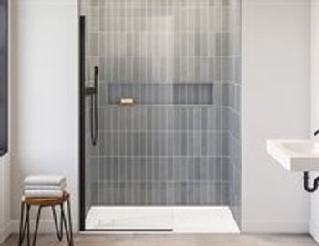 Leona 60x32 Matte Black Corner Shower with Return Panel & Base * Shower Trim Sold Separately *